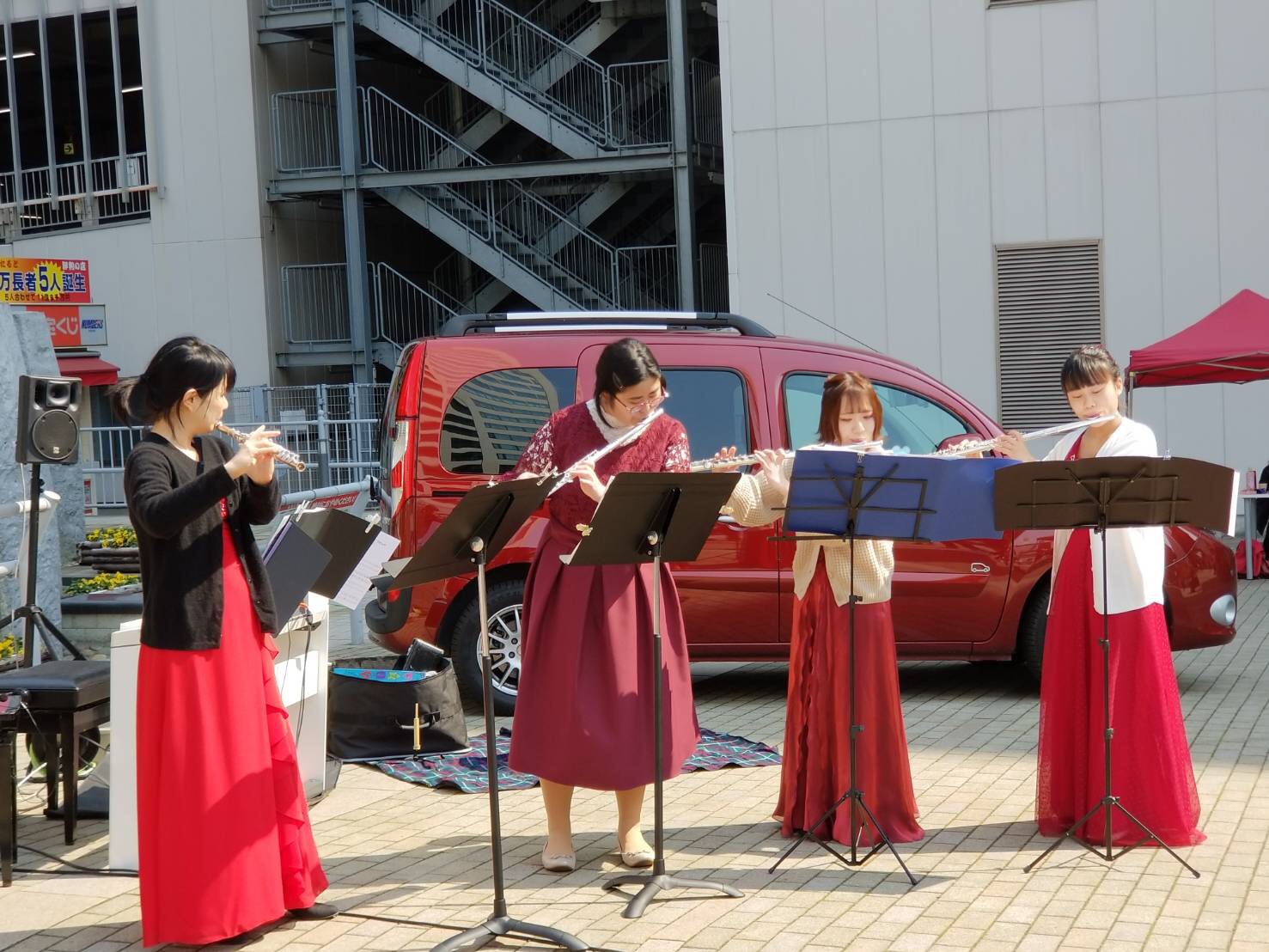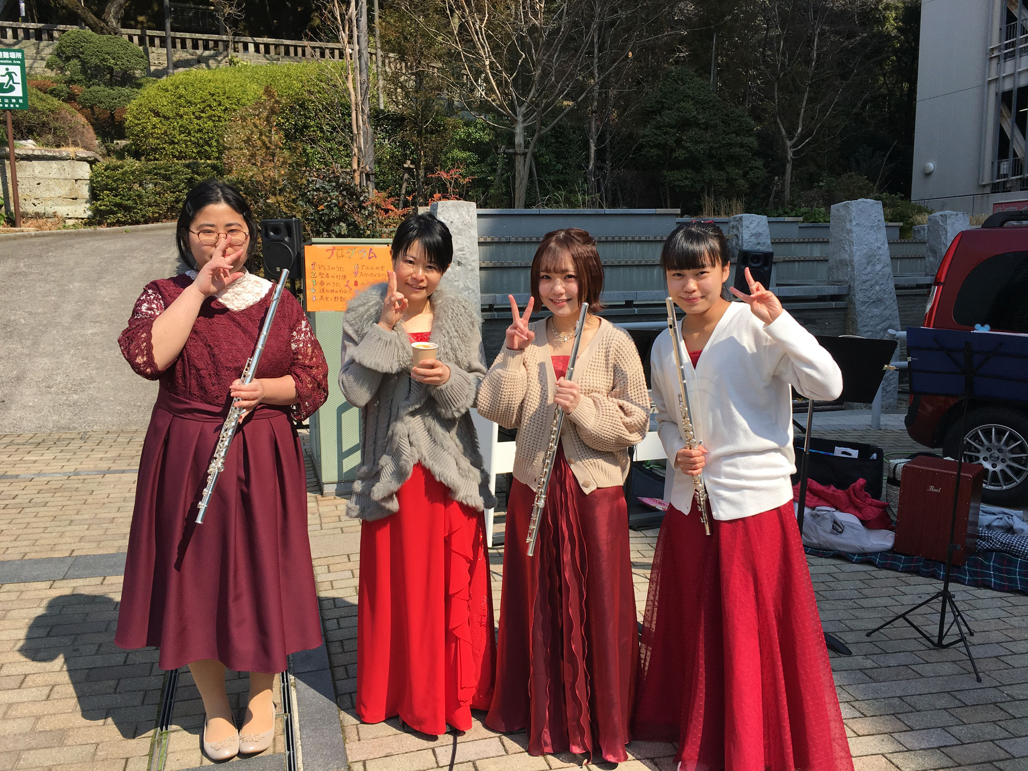 生徒に活躍の場を設けたいと思い、数年前から地元に貢献できるイベントに出演できるようにしています。実はグループ名もちゃんとあって、「フルートアンサンブルフレーズ」といいます。よろしくお願いします♫随時出演依頼受け付けていますw